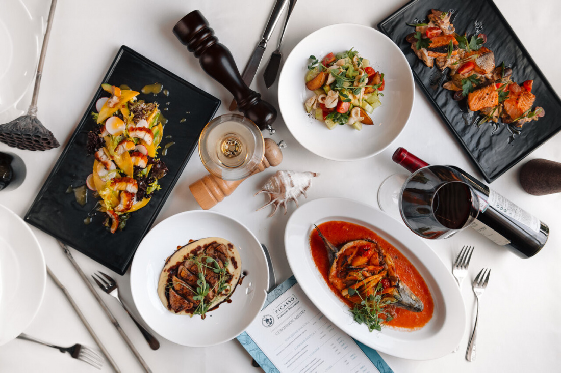 В ресторане Picasso вы можете провести фуршет, банкет или шведский стол. В дневное время суток у нас транслируются спортивные мероприятия, а вечером можно отдохнуть под звуки живой музыки. В основе меню ресторана — рыбная кухня. Средиземноморские блюда обязательно придутся по вкусу даже самым искушенным гурманам. А в дополнение можно заказать бокал изысканного вина.