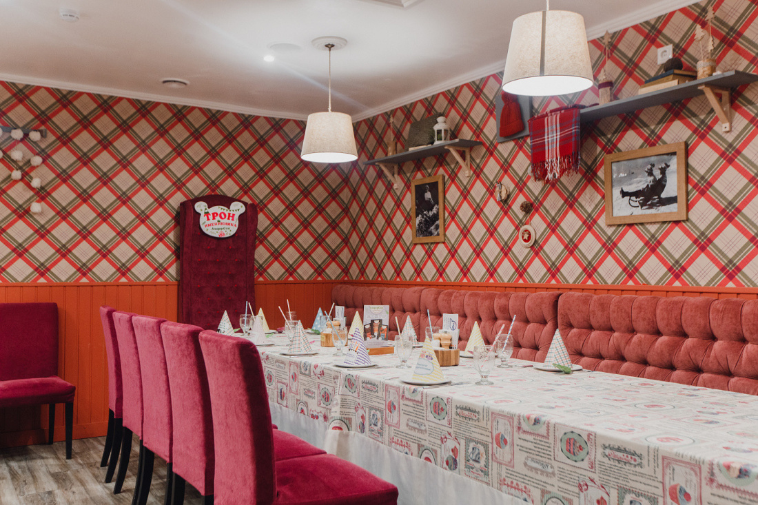 Основной зал ресторана с симпатичным полосатым красно-белым роялем и деревянной лошадкой-качалкой, два банкетных зала и кофейня с витриной. В будние дни можно зайти на бизнес-ланч, а для самых маленьких есть кулинарные мастер-классы.