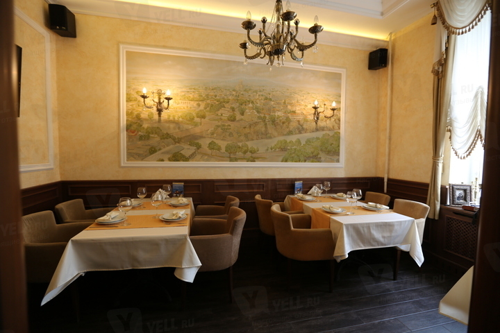 Заведение оформлено в классическом стиле. Столиков немного, так что атмосфера всегда уютная. Есть несколько отгороженных ниш для уединённого общения. Зал светлый, с большими окнами.