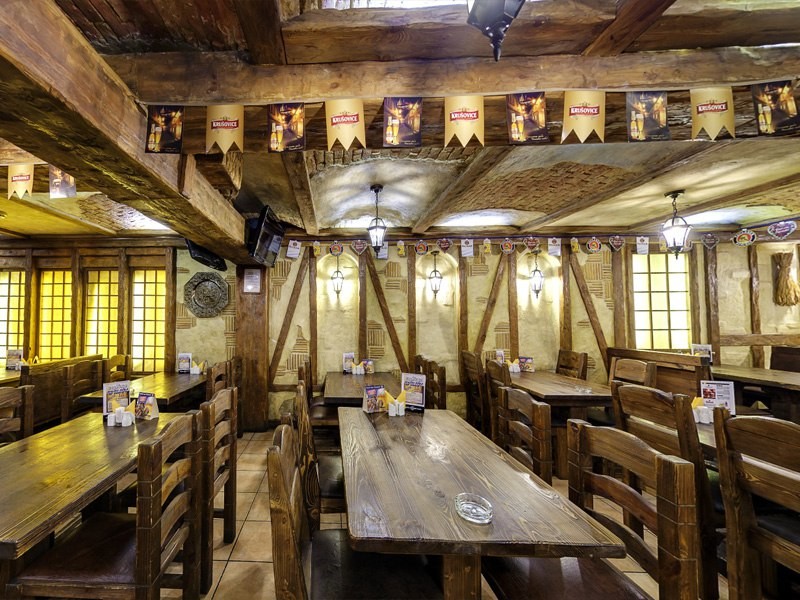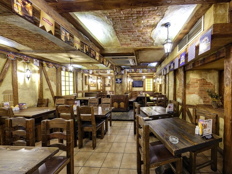 Большие, уютные залы оформлены в европейском стиле. Посетителей обслуживают пунктуально, быстро, но без суеты. Можно попробовать редкие сорта пива. Заведение предлагает купоны и другие акции для гостей.