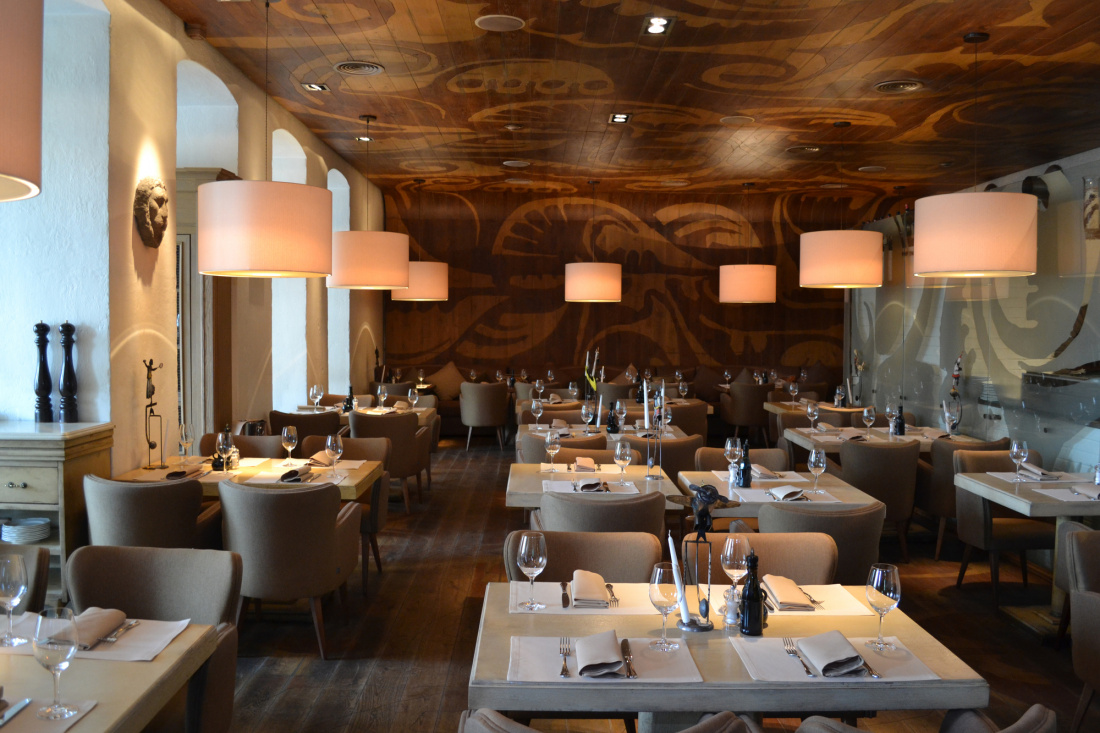 Интерьеры просторных залов с приятной подсветкой выдержаны в строгом стиле, есть зимняя терраса. Персонал обходителен и работает быстро. Пиццу готовят в традиционной дровяной печи. В меню также есть вегетарианские и сезонные кушанья, итальянские марочные вина.