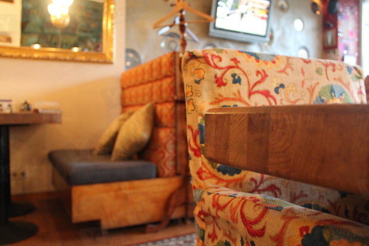 В зале ресторана расставлены удобные мягкие диванчики со столиками, стены украшены картинами и коврами. Обслуживающий персонал вежлив и быстро выполняет свою работу.