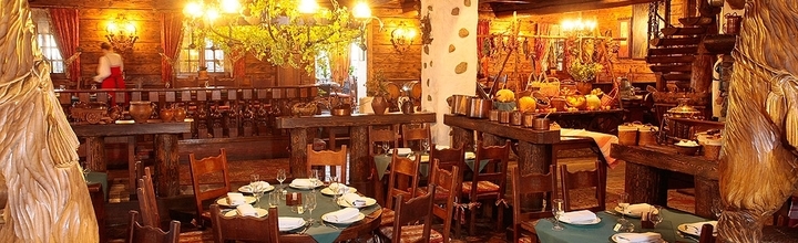 Кухня – русская. Стоит попробовать гречку, тушённую в печи с белыми грибами, гороховую похлёбку в ржаной коврижке, охотничий салат.