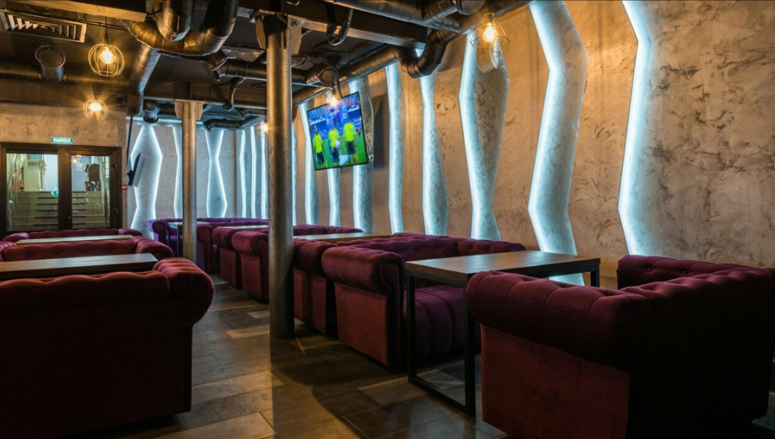 Интерьер заведения оформлен в стиле лофт: кирпичные стены, удобные мягкие диваны, оригинальное освещение и плазмы для просмотра спортивных событий. Отличный вариант для отдыха с друзьями, встречи с девушкой или просмотра спорт-трансляций.
