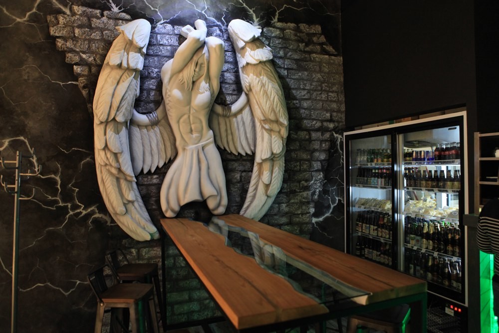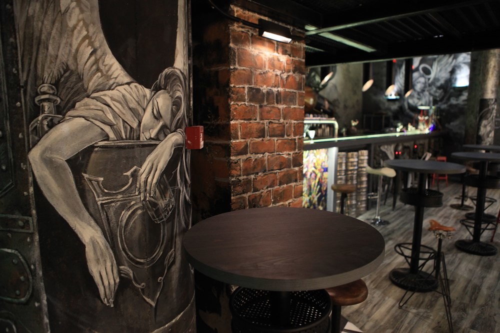 Интерьер заведения выполнен в оригинальном мужском стиле с необычными 3D рисунками на стенах и барной стойке. В баре на регулярной основе проводятся трансляции спортивных событий. Это настоящее прогрессивное место, потому что атмосфера здесь всегда располагает к общению и оставляет приятные воспоминания, такие, что всегда хочется вернуться.