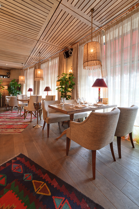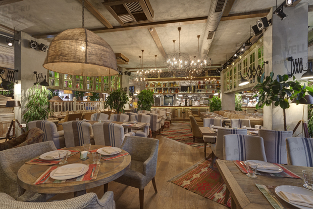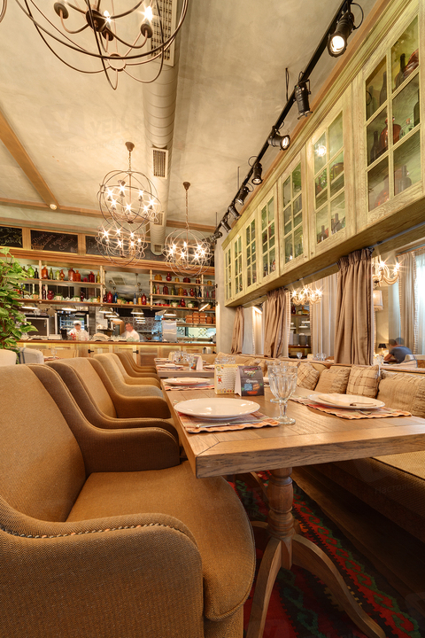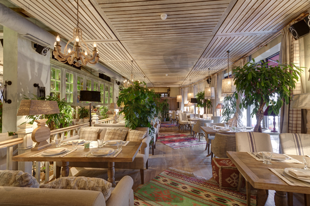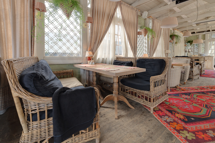 Заведение спланировано так, чтобы гости могли максимально комфортно общаться и есть. Имеется открытая веранда. Летом посетители могут расслабиться, сидя в шезлонгах.