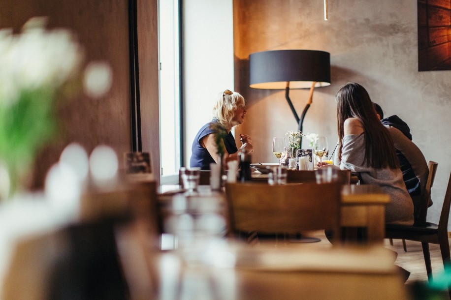 В помещении много свободного пространства, в светлом зале большие окна в пол, оригинальные люстры. Стоимость напитков вполне доступная, наценки на вино – минимальные.