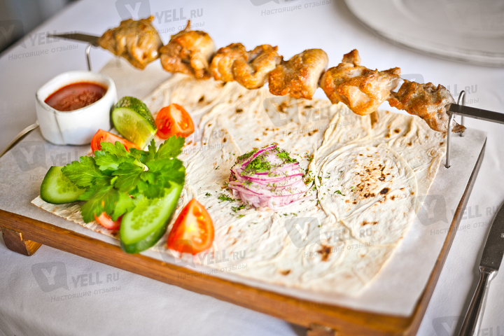 В меню предлагаются традиционные грузинские блюда, приготовленные по домашним рецептам. Также есть детское меню и богатая барная карта.