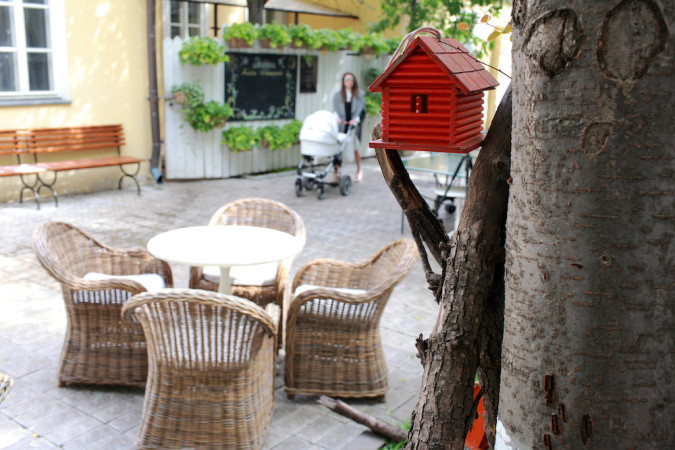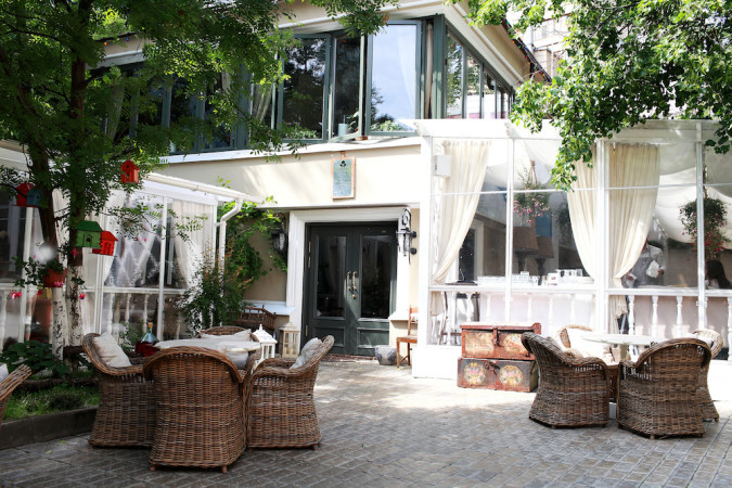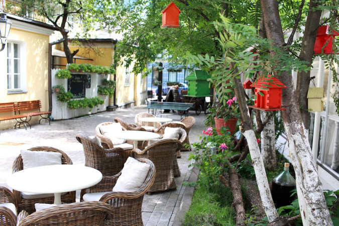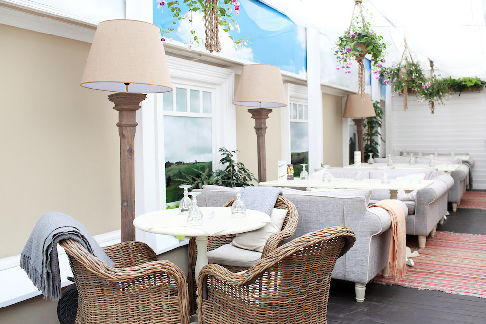 Интерьер оформлен в светлых тонах, поэтому здесь посетителей никогда не покидает ощущение праздника. Удобные плетёные кресла позволяют расположиться за столиками с максимальным комфортом.