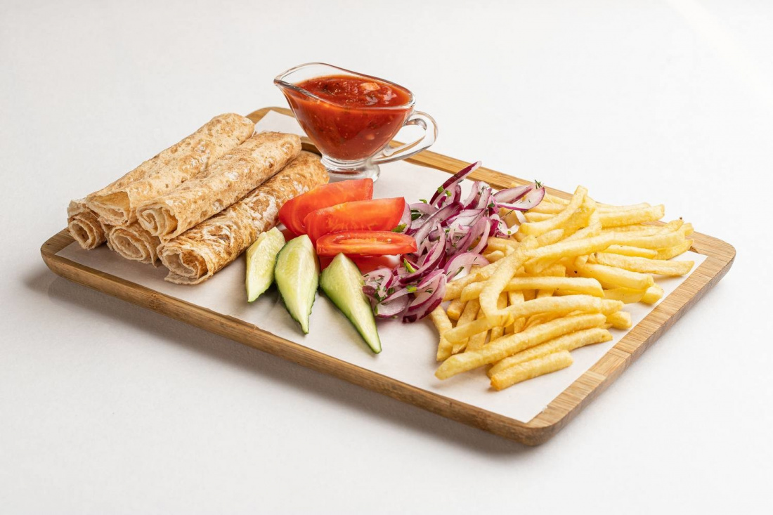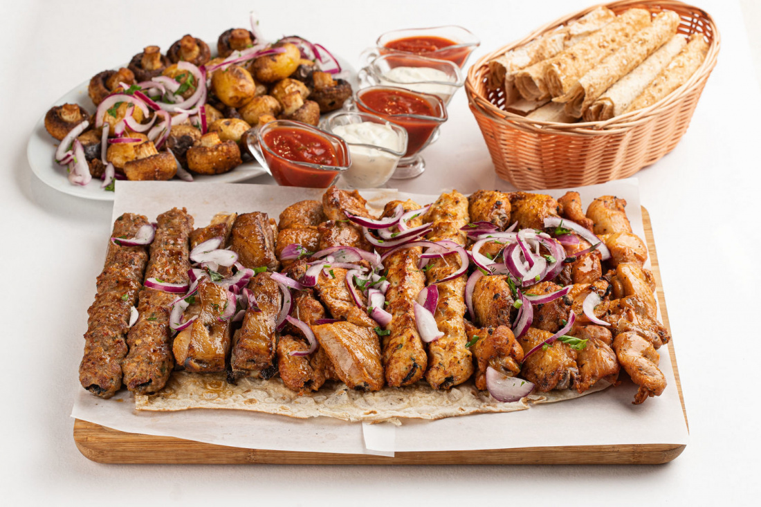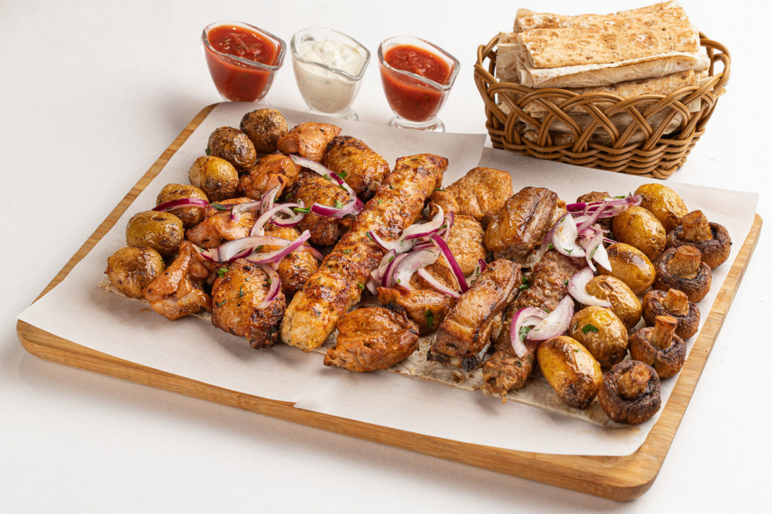 В меню представлены блюда грузинской и европейской кухни. Вам обязательно понравится ассортимент пиццы и шашлыка, вареники с капустой, хачапури по-грузински, рыба на углях, супы и салаты. Перекусить можно как в кафе, так и заказать ароматный шашлык на дом или в офис.