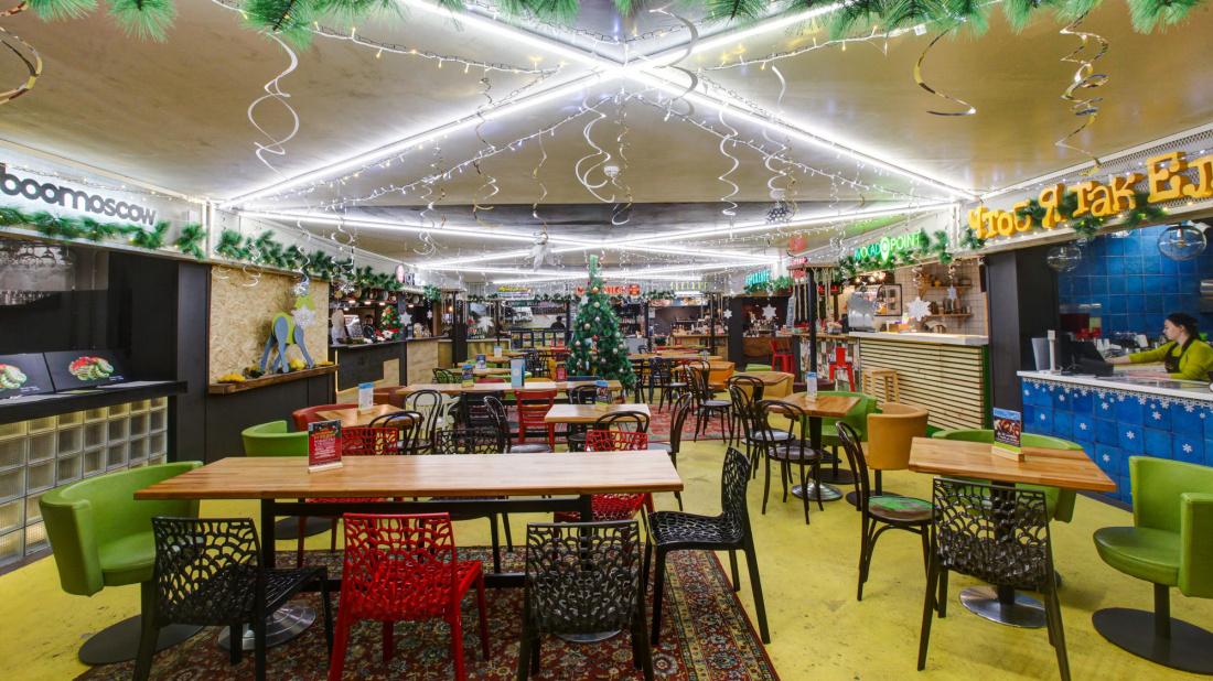 Фуд-корт расположился в МГУ «Аптекарский Огород» и выглядит очень привлекательно: разноцветные стулья, светящийся потолок и много декора. И главный плюс – на одном пространстве можно зайти и в кофейню, и в суши-бар, и даже в кондитерскую.