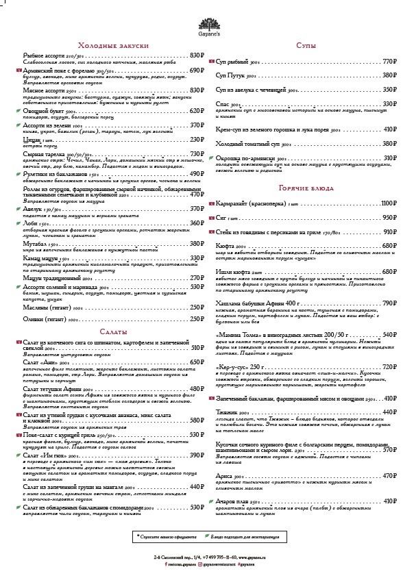 Ресторан Гаяне'С – семейное заведение армянской кухни, где гостей ждет по-домашнему теплая обстановка, вкусные блюда, приготовленные по традиционным рецептам, а также всегда приветливый персонал.