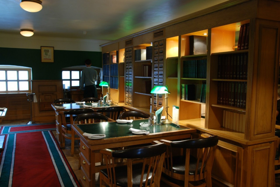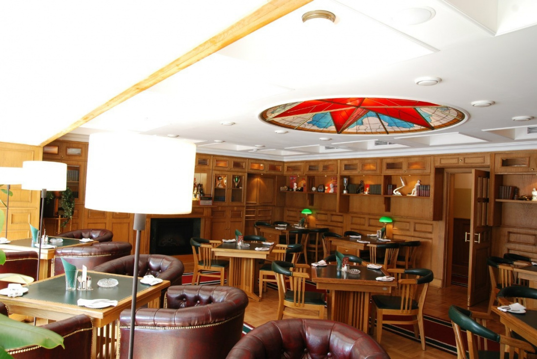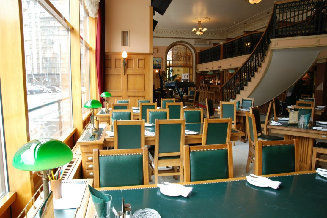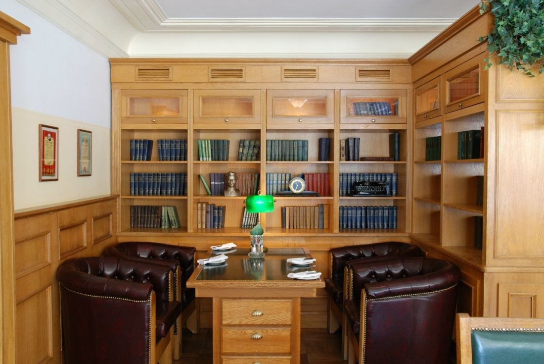 В ресторане четыре зала, каждый – со своим интерьером. В библиотеке, например, можно не только выпить пива, но и почитать труды Маркса. А в кабинете начальника – организовать небольшой банкет.