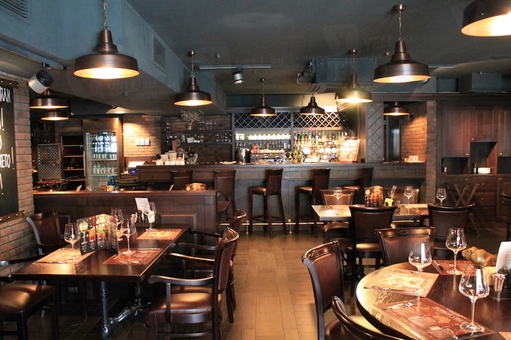В заведении – респектабельный интерьер в шоколадных тонах с картинами на стенах и экранами под потолком, удобные мягкие стулья и диваны. Достойное обслуживание. Вина подаются по бокалам и в бутылках. Летом выставляют столики под навесами, есть зимняя веранда с красивым видом.
