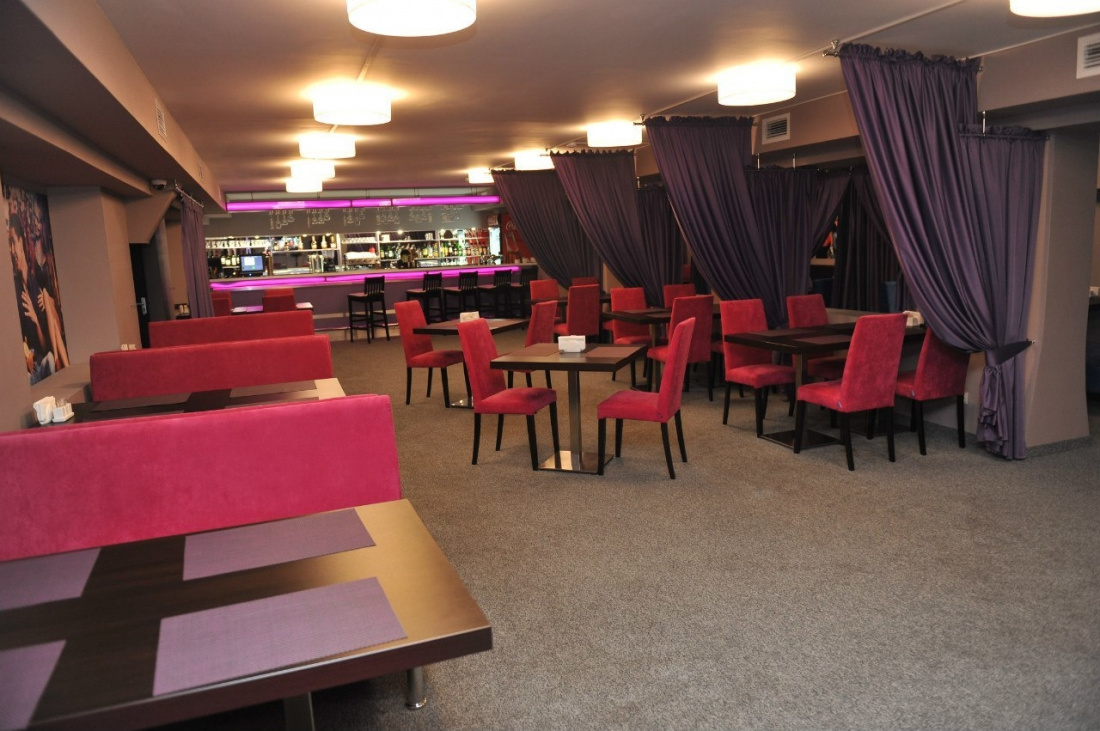 В одном из залов, в мягких тонах, со светлыми диванами, можно посидеть с семьёй или за бизнес-ланчем, в другом, в розовых и лиловых цветах, – всё для клубного отдыха. Есть барная стойка, ди-джей ставит музыку на заказ, подают алкоголь и ароматные паровые коктейли. Гости могут выбрать из большого ассортимента блюд и вин, а также добавить к заказу десерт.