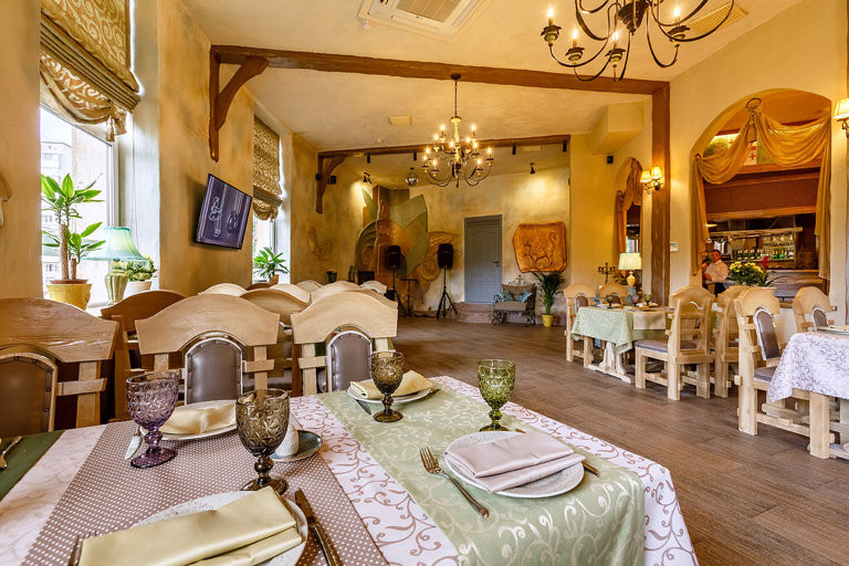 В меню представлены блюда грузинской и европейской кухни. Непременно попробуйте хинкали, лобио в горшочке, жульен, запеченные грибы, картофель по-домашнему, шашлык, люля-кебаб, ребрышки, куриные крылышки, хачапури и стейки на углях. В заведении работает доставка, проводятся банкеты.