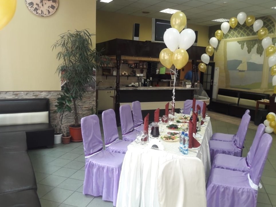 Интерьер заведения оформлен просто и по-домашнему уютно. Кафе располагает отдельным банкетным залом, где можно отметить любое важное событие: свадьбу, годовщину, юбилей, день рождения или корпоратив.