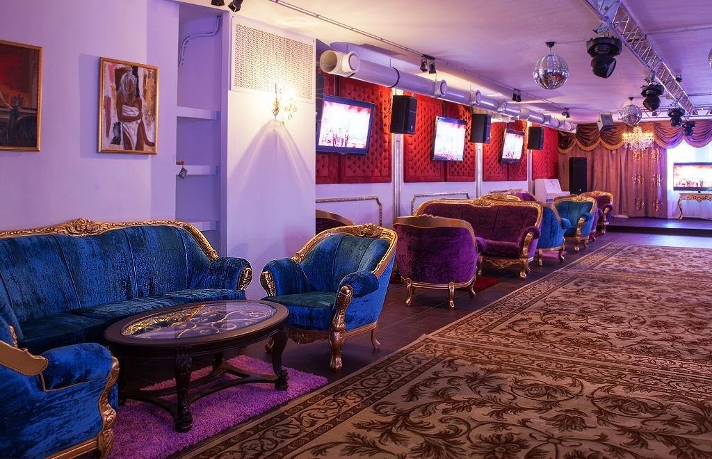 Интерьер клуба оформлен в ярких тонах: красные мягкие диваны, диско-шары и стильные люстры, картины и плазмы на стенах. Здесь хочется отметить день рождения, провести вечер с друзьями или поужинать со второй половинкой.