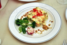 В меню вы найдете блюда русской и европейской кухни, с разнообразными закусками на большую компанию, а также сытные завтраки.