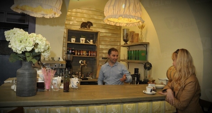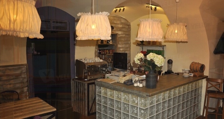 Интерьер, выполнен в пастельных тонах с деревянной мебелью и камином. Гостеприимный и профессиональный персонал поможет вам в организации банкета или праздника на различное количество гостей. Кроме того, по будням здесь предлагают бизнес-ланч по демократичной цене.