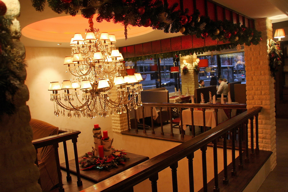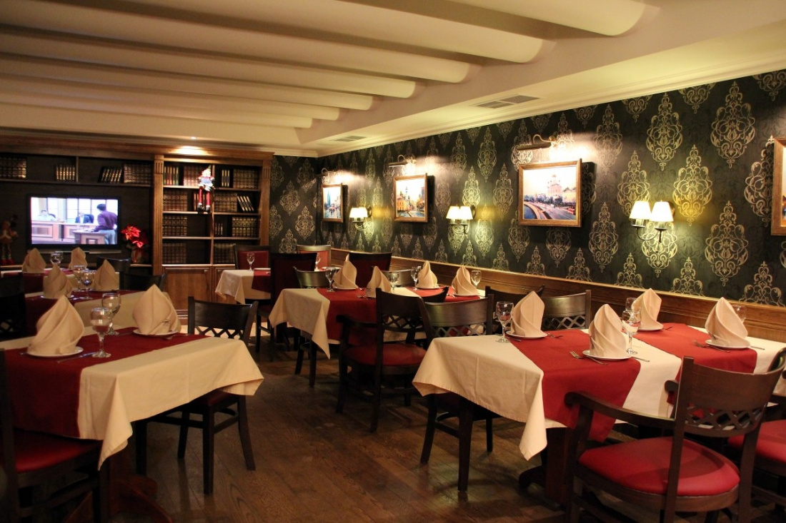 Гости ресторана могут расположиться в двух залах и на летней веранде в теплое время. Днем в заведении играет приятная фоновая музыка, а вечером ее сменяют талантливые музыканты. В будние дни 2:00 до 16:00 в будние дни, вы можете заказать бизнес-ланч из пяти блюд по недорогой цене.