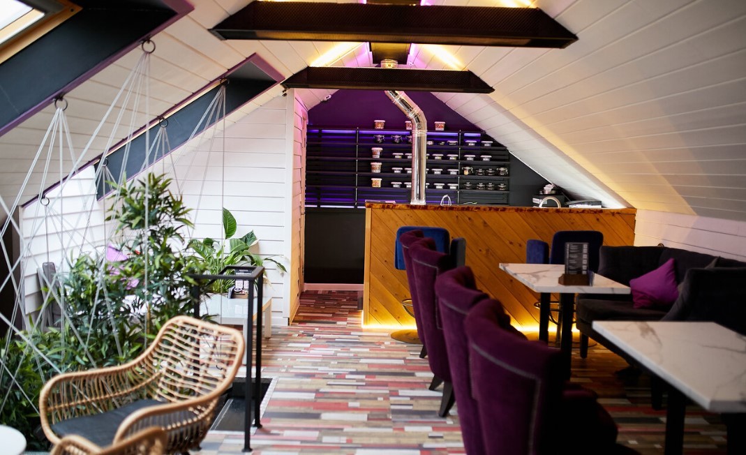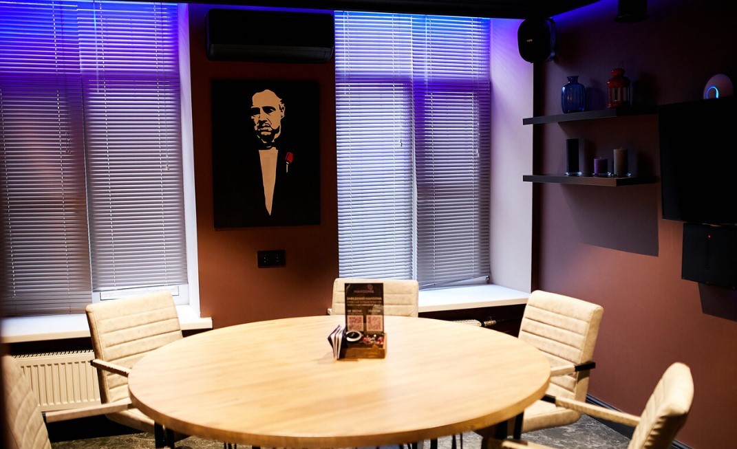 Интерьер – оригинальное сочетание стиля и домашнего уюта. Здесь вам придется по душе удобная мягкая мебель, оригинальные потолки, граффити и постеры на стенах и уютное освещение. Здесь хочется отдохнуть с друзьями и расслабиться после сложного дня.