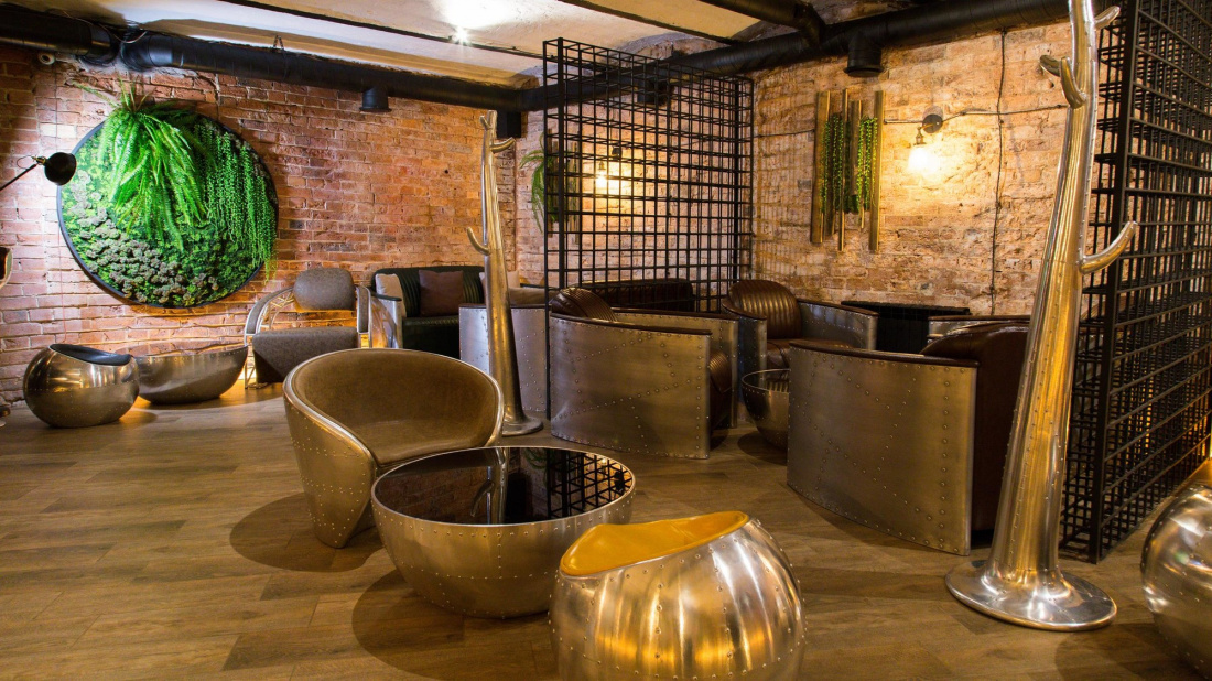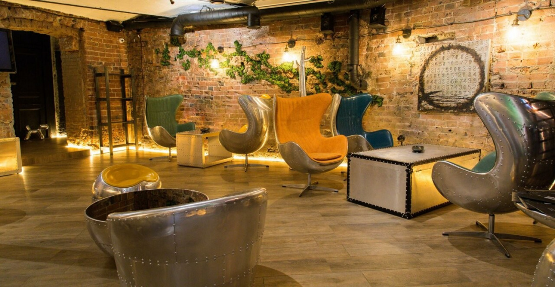 Интерьер заведения – оригинальное сочетание кирпичных стен, кожаной мебели и железной отделки. Гостей удивит не только интересные мебельные решения, но и декор лаунжа.