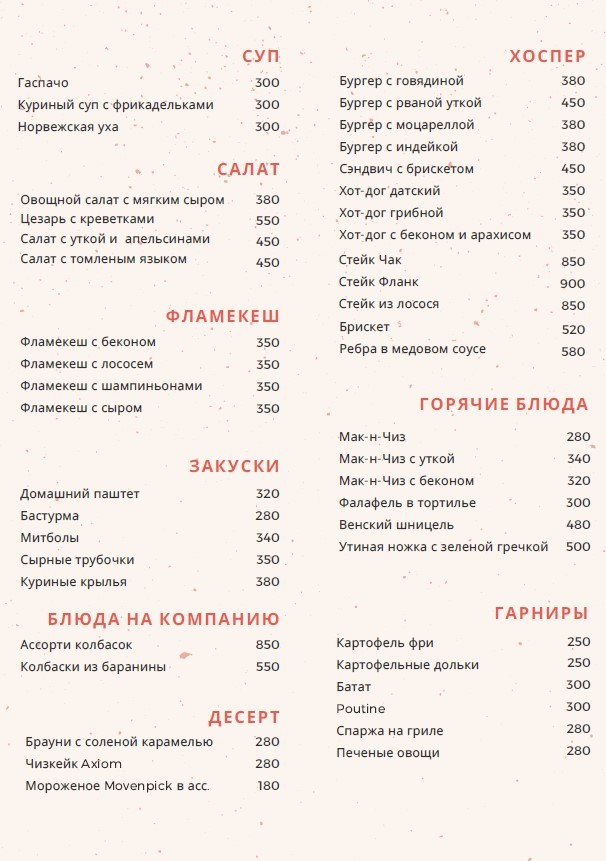 Дополнить напиток можно мясным блюдом из широкого меню. Посетители часто выбирают бургеры, ребра на гриле, сочные стейки, разнообразные салаты. Тут же вы можете поиграть в настольные игры.