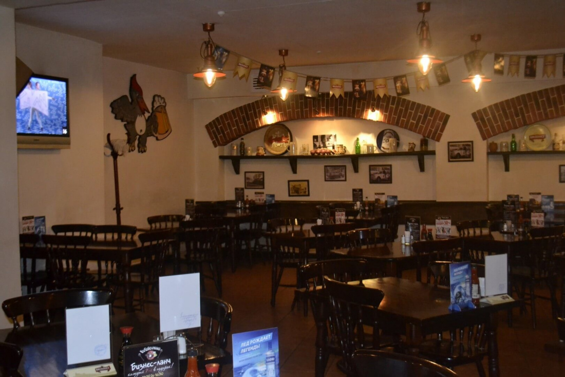 Интерьер оформлен в стиле пивного ресторана хорошего уровня с кирпичными стенами и высокими деревянными арками. Кроме того, в зале установлен проектор и проходят трансляции спортивных событий, а с понедельника по пятницу посетителям предлагают бизнес-ланч по демократичной цене.