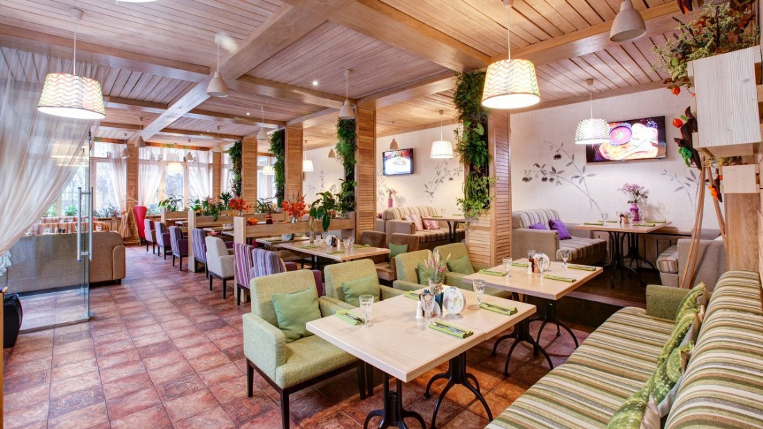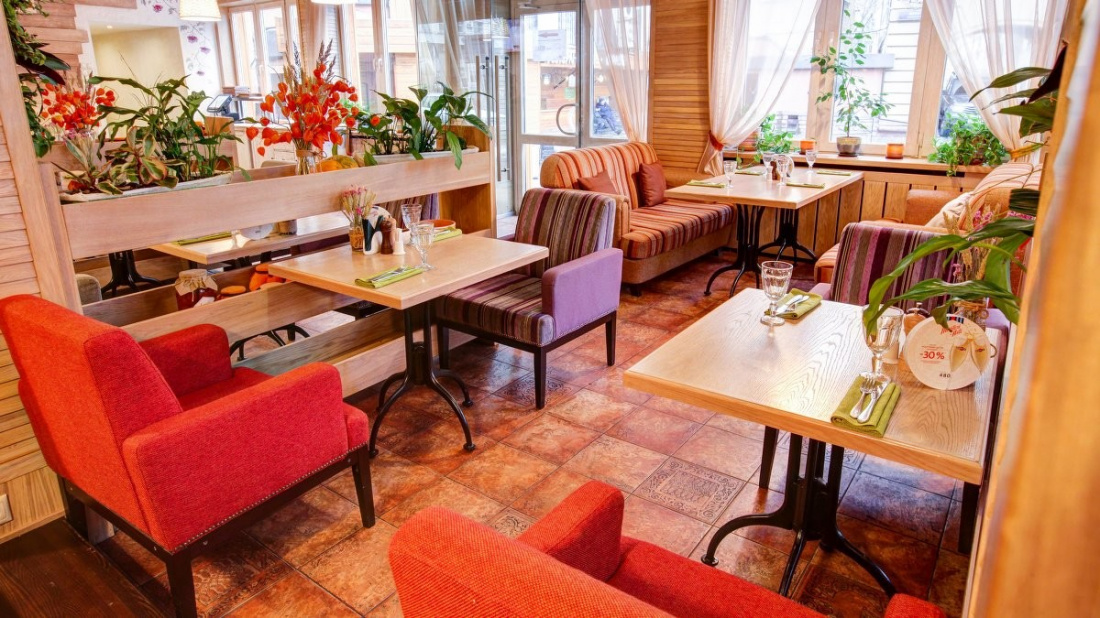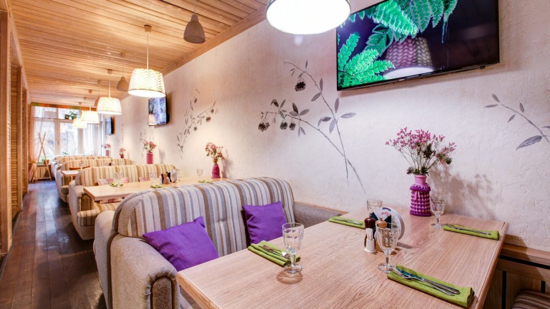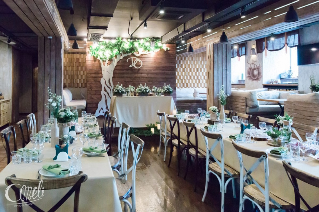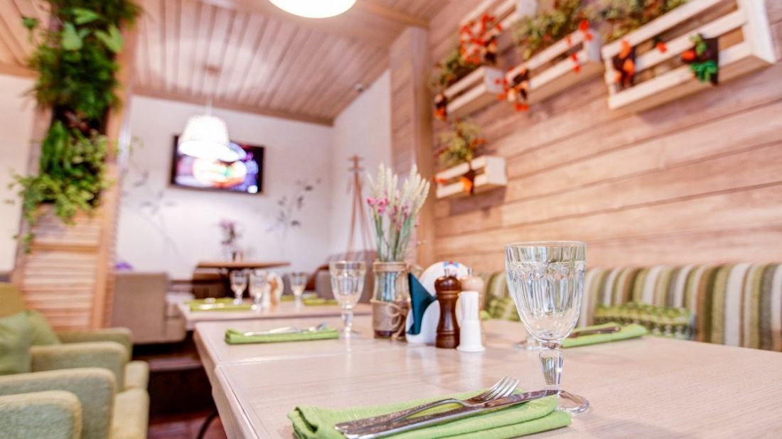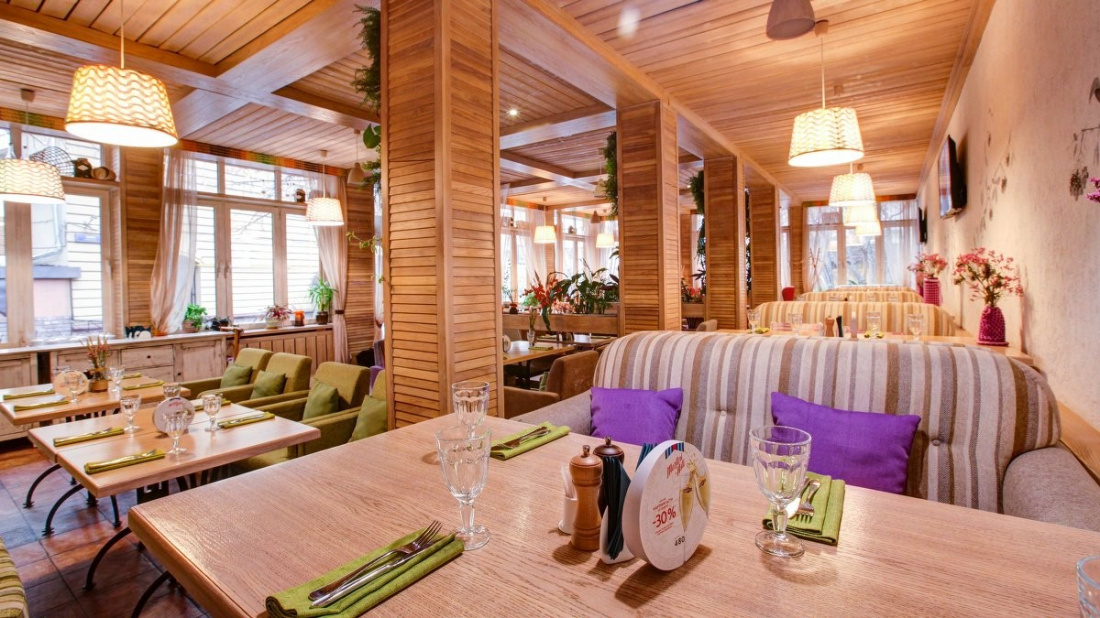 Интерьер в стиле рустик понравится тем, кто любит натуральное дерево и уют. В заведение можно прийти с детьми, для них – специальное меню и аниматоры. По выходным проводятся мастер-классы, по вечерам звучит музыка. Можно спеть в караоке.