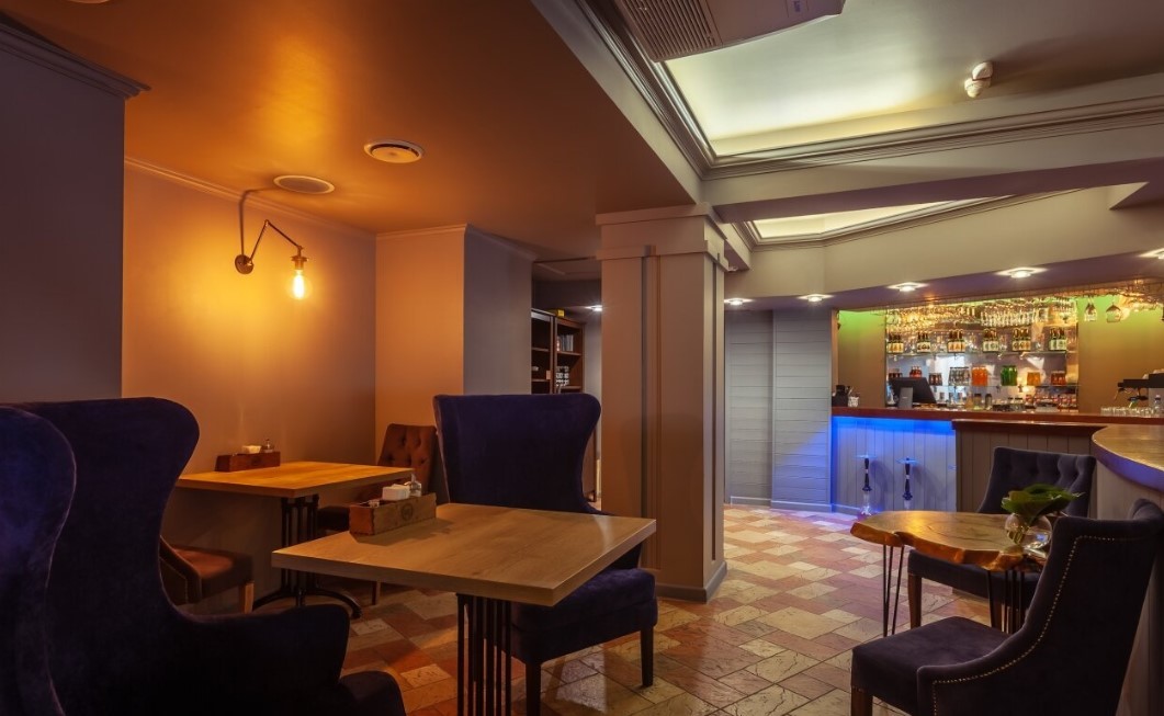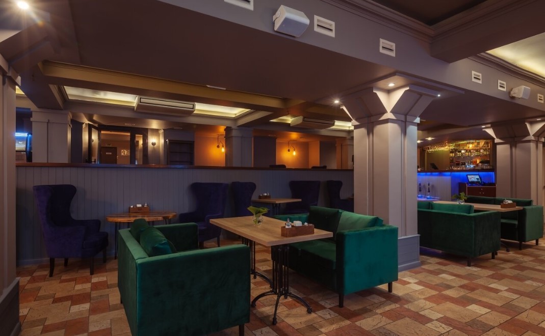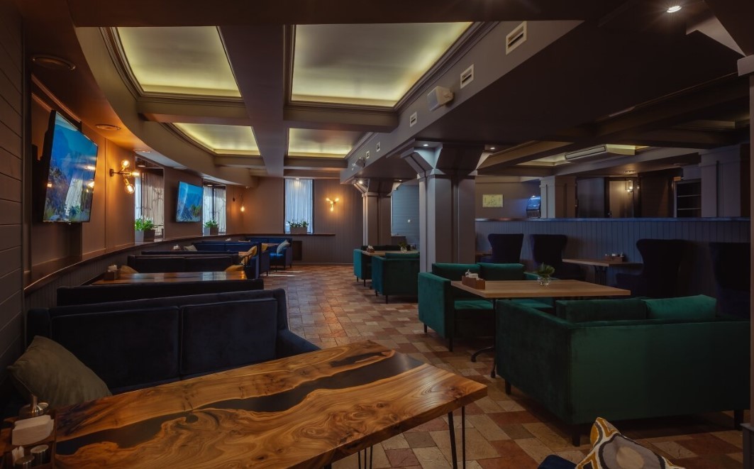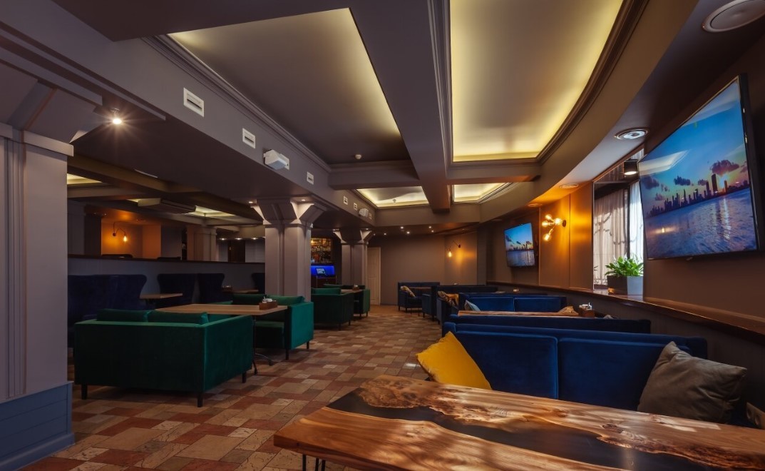 Заведение располагает несколькими залами: лаунж зона, банкетный зал, кальянная, игровая зона и танцпол. Также в рестобаре проводятся вечера караоке, стендап-шоу, а по воскресеньям – детская анимация.