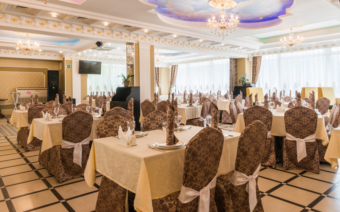 Здесь хочется посидеть после сложного дня, поужинать с семьей, провести время с друзьями. В ресторане есть банкетный зал для проведения торжественных мероприятий.