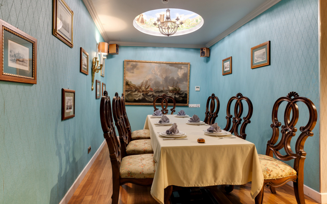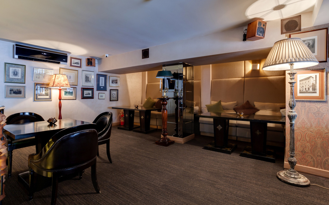 Ресторан RIX – солидное заведение с шикарным интерьером. Массивная деревянная мебель, мягкие стулья и диваны, пастельные стены с огромным количеством картин, люстры и бра, железные статуэтки и светильники. Не ресторан, а настоящий графский особняк.