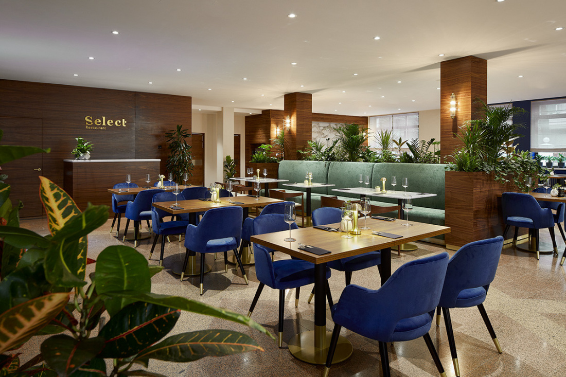 Select - это демократичный ресторан, отвечающий запросам широкой аудитории. Современный, комфортный интерьер отлично подходит как для деловых встреч, так и для семейных трапез. Используемая в интерьере мебель позволяет трансформировать ресторан для проведения деловых мероприятий и семейных торжеств.