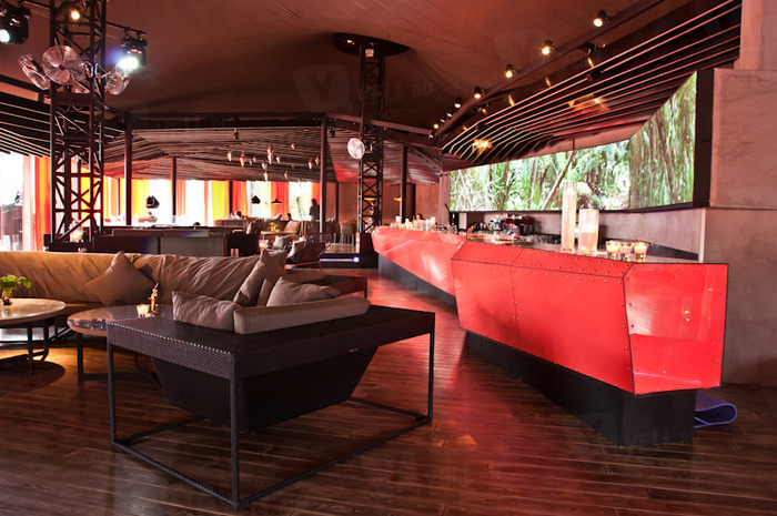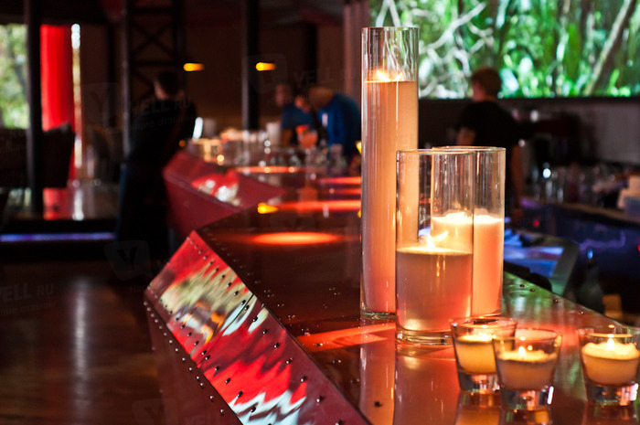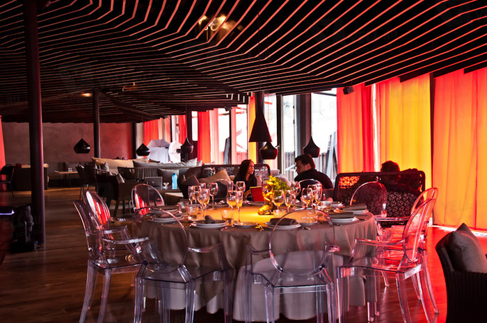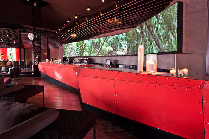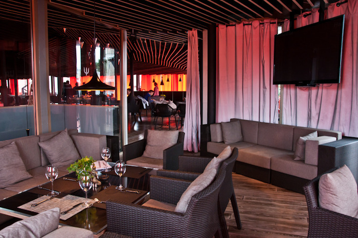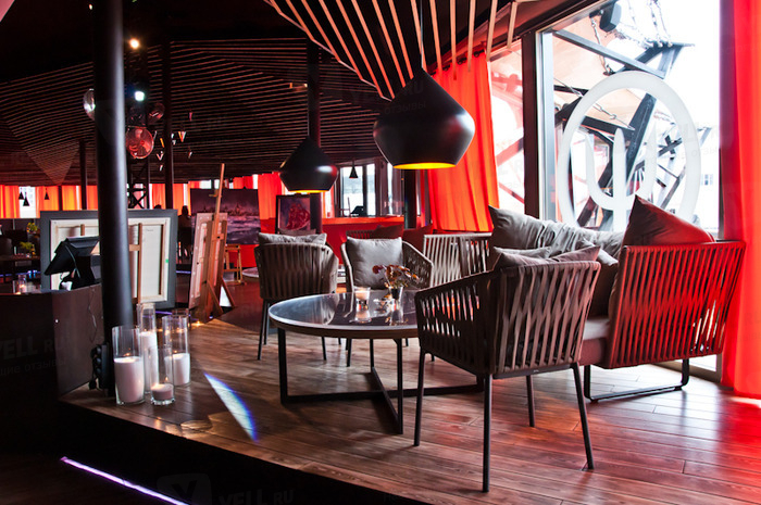Особую романтическую атмосферу в ресторане придает, конечно, вид на Москву-реку, а шикарный интерьер и ставка на музыкальное сопровождение заведения делает это место уникальным. Это не просто ресторан, это храм музыки: сюда приходят не только за вкусной едой, но и для того, чтобы послушать качественную европейскую и русскую музыку. В ресторане постоянно проводятся вечеринки и музыкальные концерты.