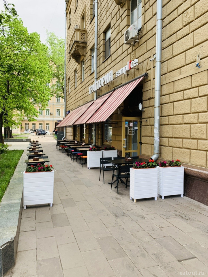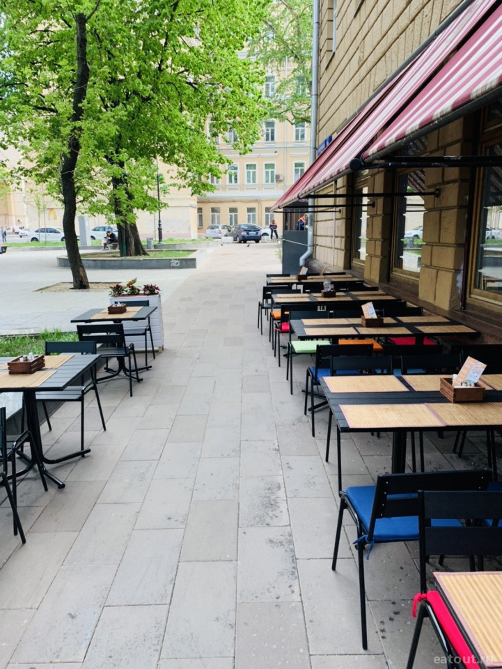 Интерьер ресторана классический, цветы создают свой особый уют в ресторане. В теплое время года открывается летняя веранда. Для тех, кто пришел в ресторан с маленькими детьми - есть специальные стульчики.
