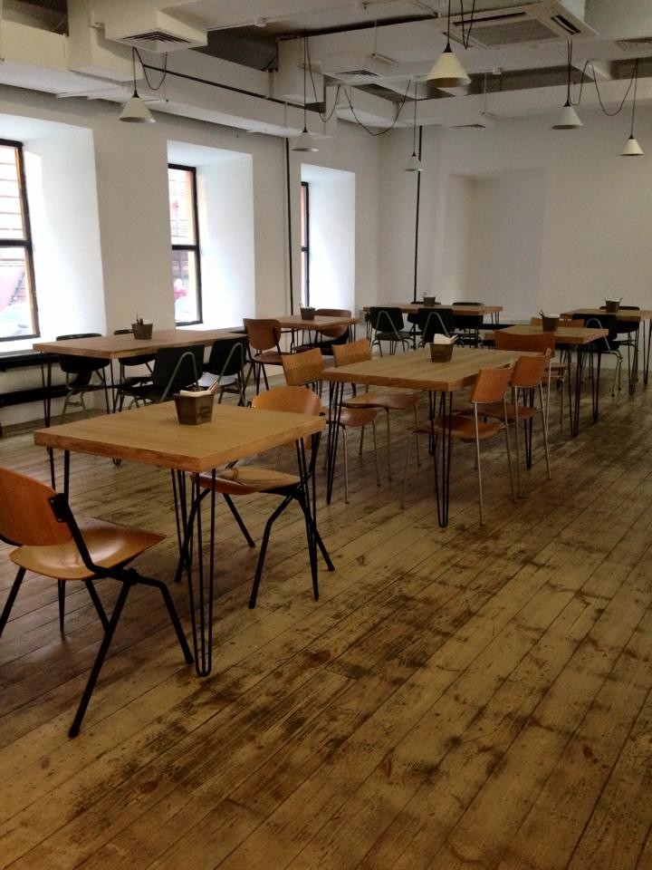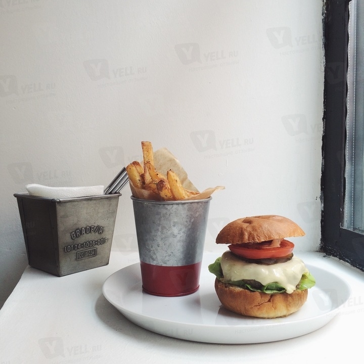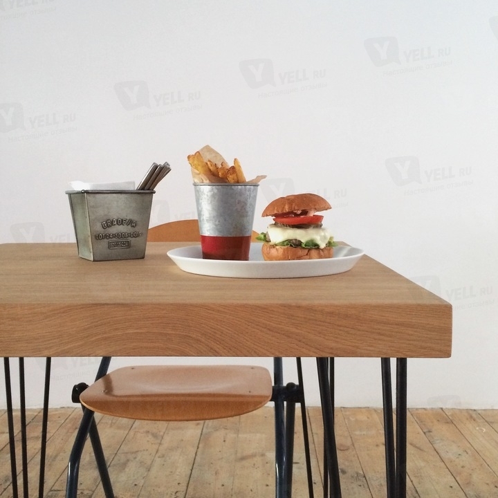 Интерьер заведения простой - белый стены и деревянные столики около окон. В летнее время гости смогут насладиться бургерами на летней веранде.Также здесь можно сытно позавтракать и пообедать.