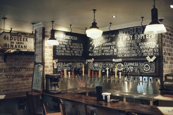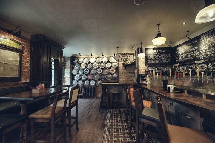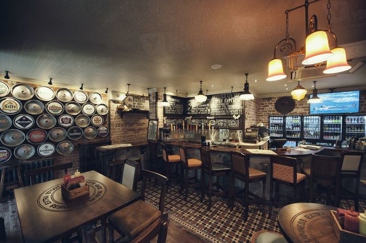 Современный бар с интерьером в ирландском стиле любят посещать клерки во время обеденного перерыва, дружные компании вечером после работы, даже можно пригласить девушку, если она не против посмотреть с Вами спортивный матч и выпить вишневого пива или классический коктейль.