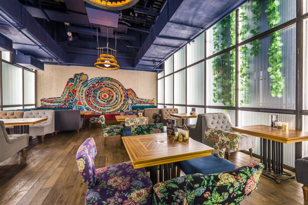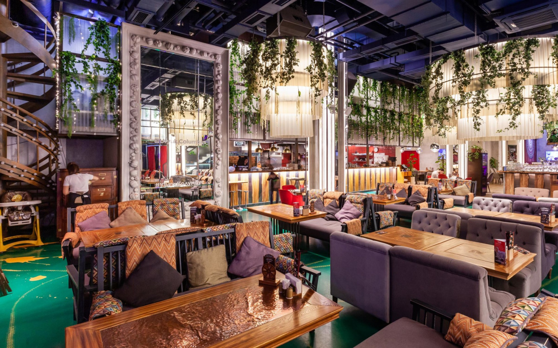 Зал оформлен в причудливом восточном стиле, а мягкие диванчики точно понравятся всем любителям комфортного отдыха. Можно продегустировать авторские коктейли и послушать приятную живую музыку. А еще ресторан приятно радует гостей акциями и бонусами.