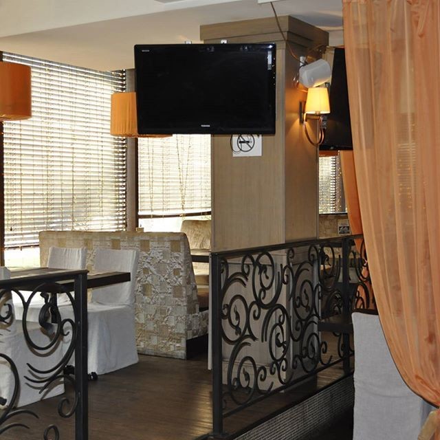 В ресторане два больших общих зала, три отдельных – для ВИП-гостей, а также две комнаты с караоке. Посетителям предлагается удобная парковка. Летом открывается веранда. Важные футбольные и хоккейные матчи транслируются на плазменных экранах.