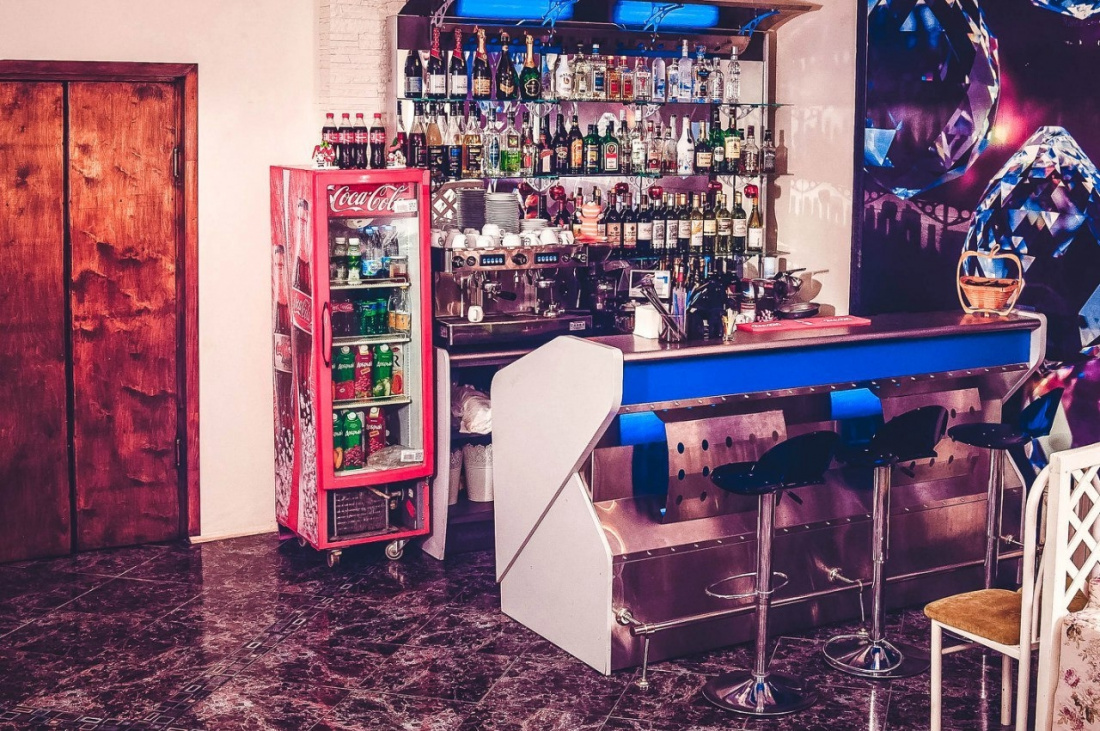 В кафе один большой зал на 40 гостей и летняя веранда. Помещение обставлено в домашнем стиле, с мягкими диванами, полками с сувенирами. Для посетителей – большая ЖК-панель, интересная осветительная техника, позволяющая превратить выступление в шоу.