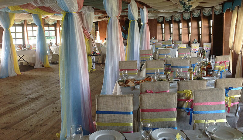 Зал "Венеция" выполнен в светлых тонах в классическом стиле. Идеально подходит для семейных праздников, свадеб и корпоративов. Это двухэтажное помещение, которое готово вместить до 150 гостей.