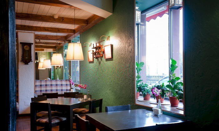 Интерьер выполнен в классическом, для подобных заведений стиле с длинной барной стойкой, танцполом и сценой, где ежедневно проходят концерты живой музыки. Кроме того, в будние дни гостям предлагается бизнес-ланч.