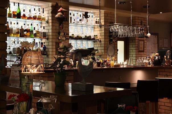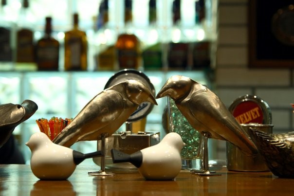 Светильники в виде гнезда; изображение огромной птицы и деревянный скворечник на стене; подушечки на диванах с нарисованными птенцами на ветках придают интерьеру особый стиль. В кафе уютно детям и взрослым. Для малышей организовываются специальные мероприятия.