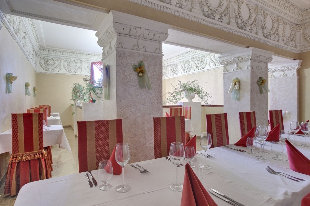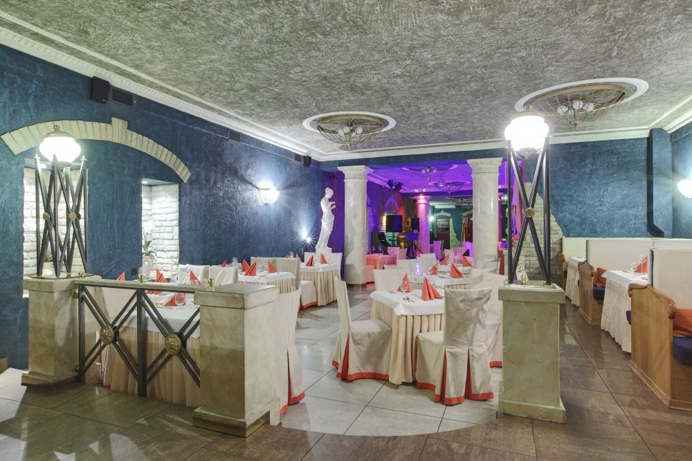 Ресторан Империя расположен прямо на берегу Невы и представляет собой прекрасное место для проведения больших торжеств. Кроме того, сюда можно заглянуть на обед с друзьями или романтический ужин. Ресторан разделен на три зала, каждый из которых выполнен в своем неповторимом стиле. С 09.00 до 11.30 посетителей ждут на завтрак, а с 12.00 до 17.00 можно пообедать по меню бизнес - ланч. По вечерам в ресторане играет живая музыка. Специально для гостей ресторана было разработано несколько вариантов банкетного меню. Огромным плюсом является то, что алкоголь и напитки на торжество можно принести с собой. Рядом с заведением расположены два причала, которыми могут воспользоваться любители морских прогулок после посещения ресторана.