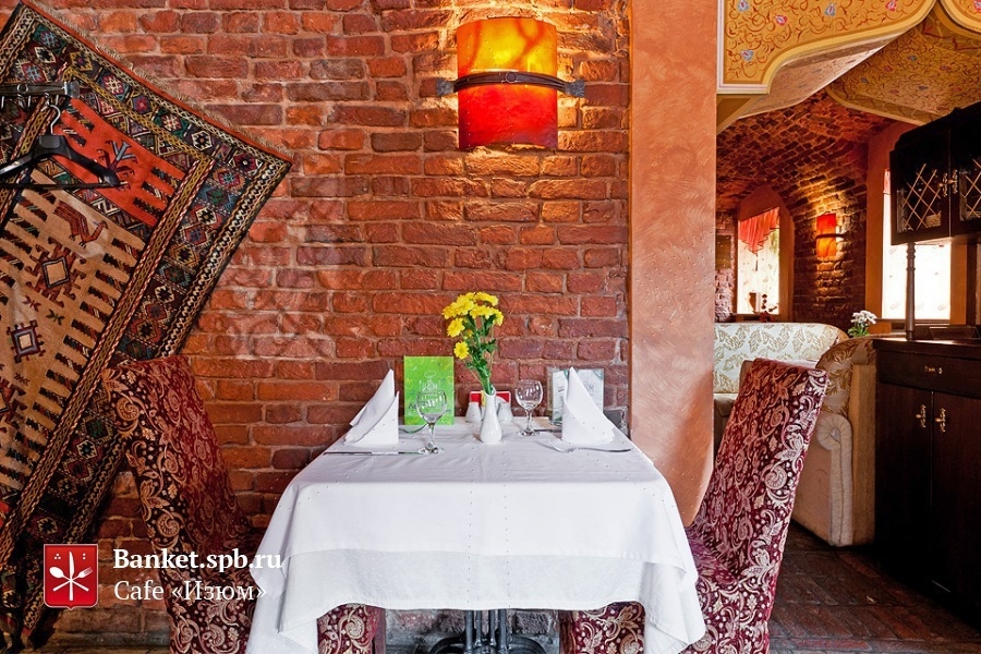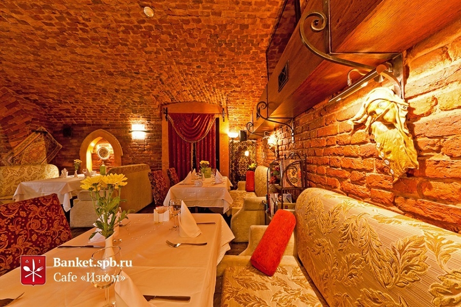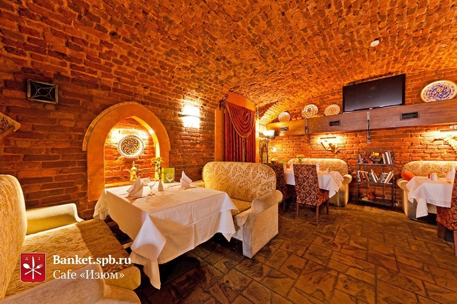 Гранд-кафе Изюм - уголок восточной неги в центре Петербурга, недалеко от станции метро Чернышевская. Здесь воссоздан национальный колорит Кавказа: ковры и расписная кухонная утварь, яркие, расшитые золотыми узорами скатерти и диванчики, уют и гостеприимное радушие. На входе вас встретит Камень Счастья, добытый в диких горах и наполненный водой. Этот местный талисман способен даровать влюблённым неомрачаемое никакими невзгодами счастье и благославить светлый семейный ужин. Кроме того, гранд-кафе Изюм - идеальное место для дружеских встреч: никто не останется голодным, если вы закажете настоящий азербайджанский садж. Его точно хватит на всех!