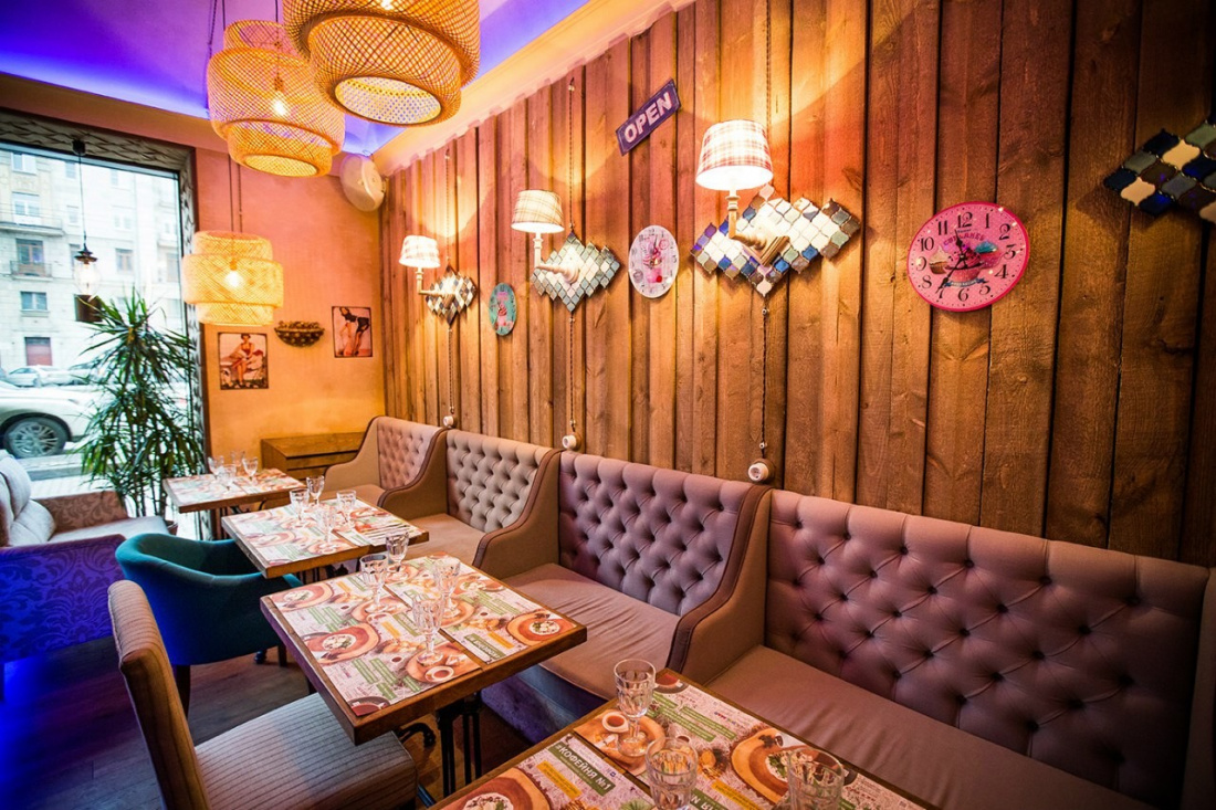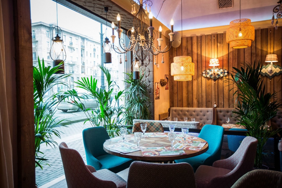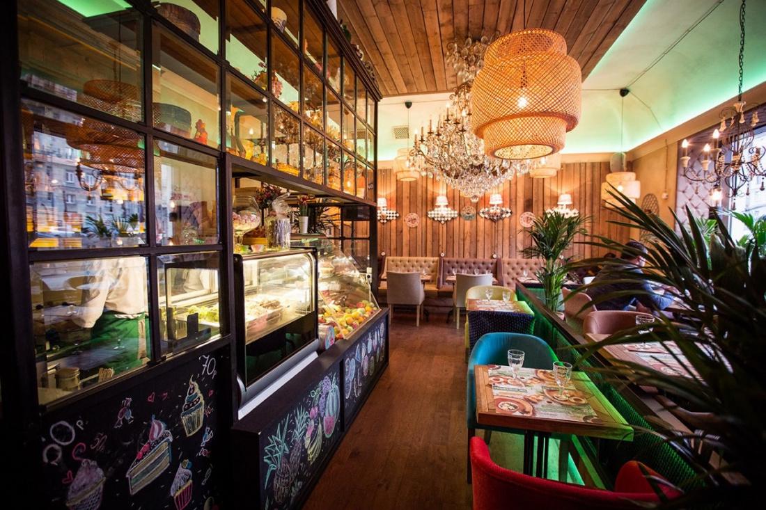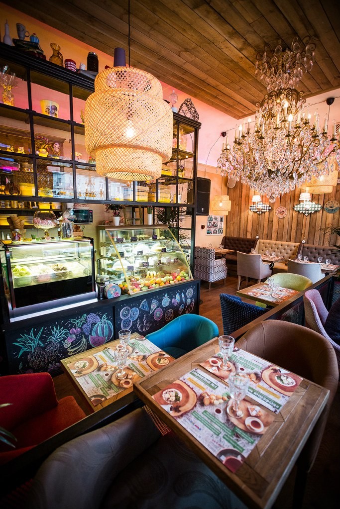 Интерьер оформлен в духе городского кафе высокого уровня, с комфортной мебелью, домашними растениями и деревянными книжными полками. С понедельника по пятницу посетителям предлагают бизнес-ланч, а завтраки здесь готовят ежедневно до 13.00.