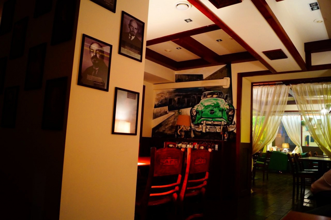 В заведении цветной свет, стены украшены фото и рисунками, уюта добавляют растения в горшках и подушки, в том числе на подоконниках, где можно сидеть. Играет кубинская музыка, посетители могут посмотреть выступления танцоров. Помимо большого меню и барной карты гостям предлагается паровой коктейль. Действуют различные акции.