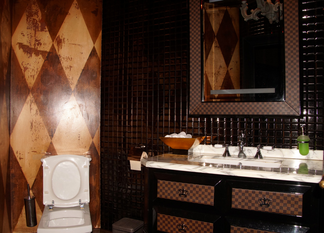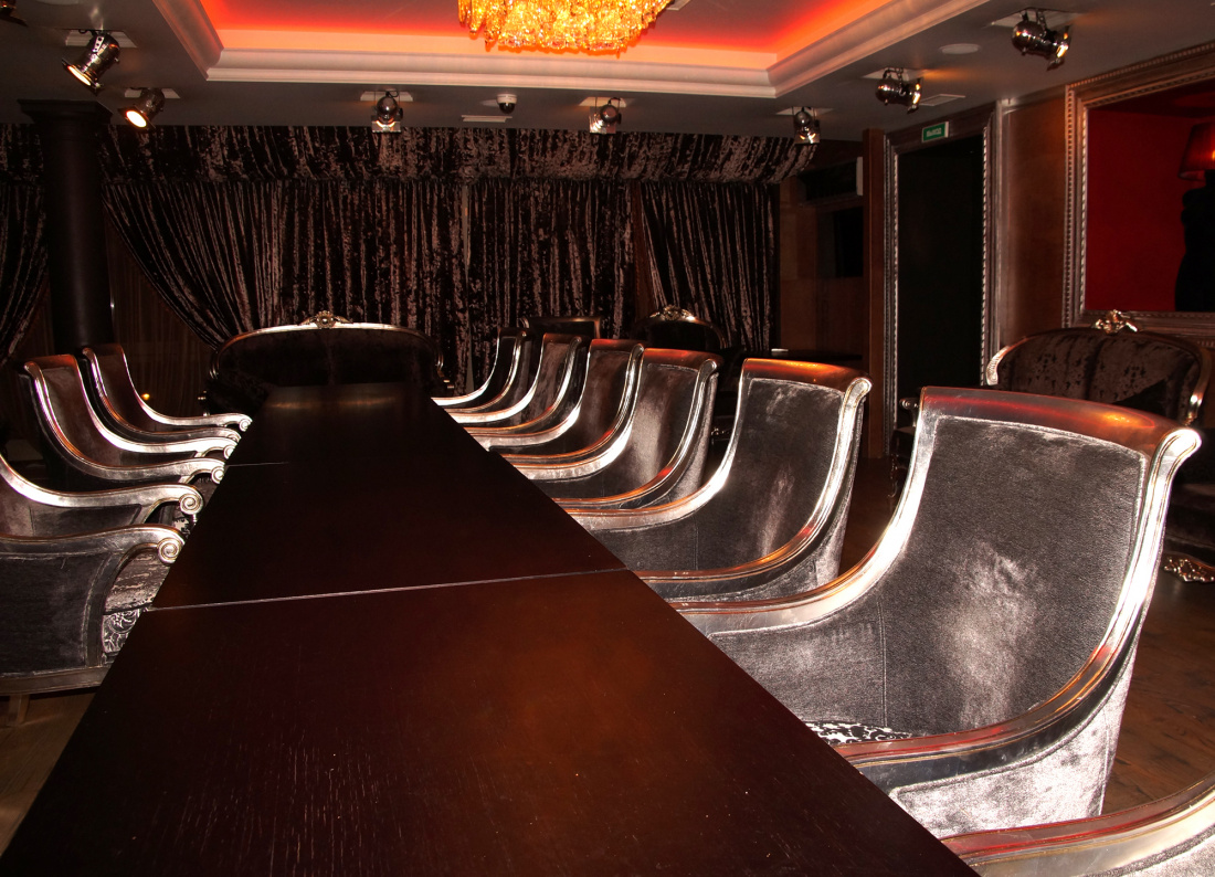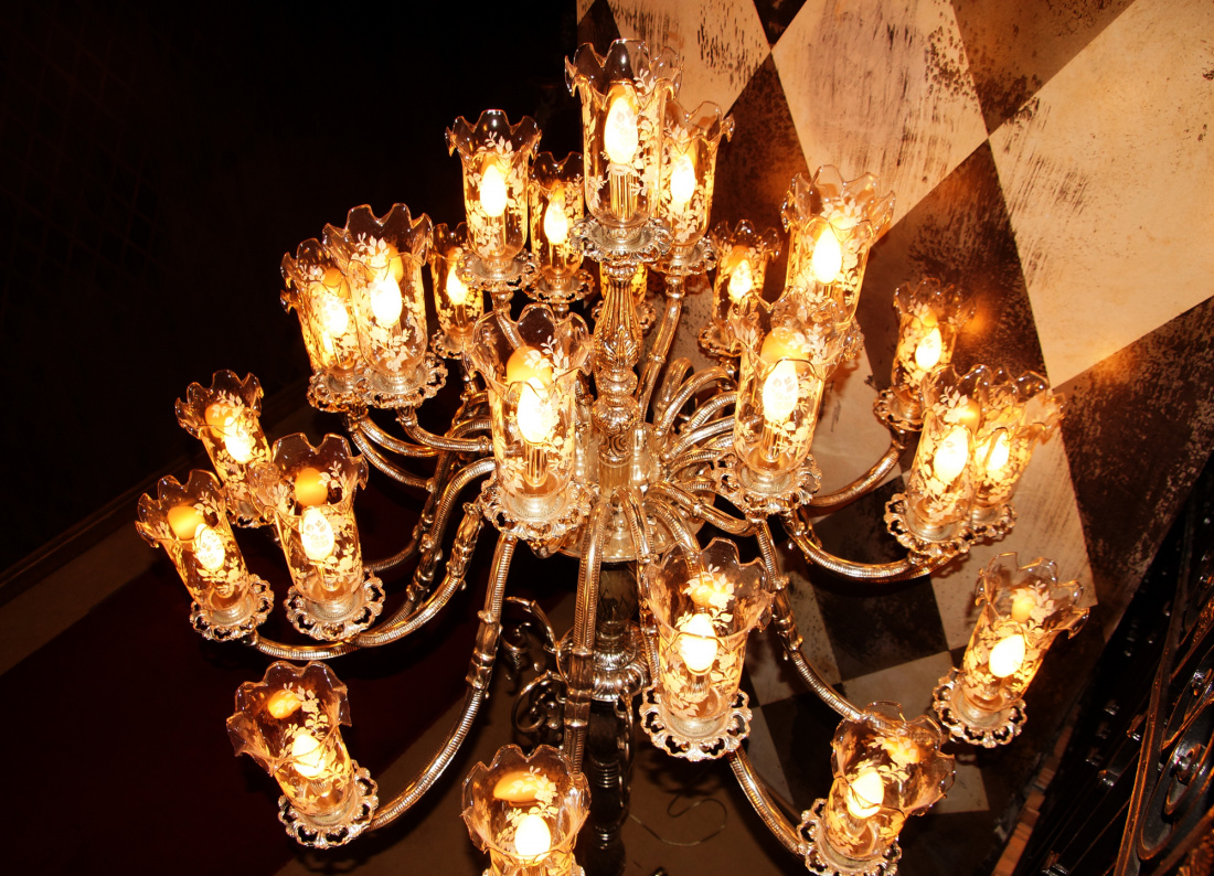 Интерьер основного помещения ассоциируется с гостевым залом в королевском дворце. Огромные люстры с множеством хрустальных подвесок, объёмные диваны с высокими спинками, кресла и столы с резными ножками, белые скатерти, подсвечники – яркие атрибуты дворцового убранства. Другое помещение, предназначенное для небольших компаний, похоже на ложу в театре. Прогрессивное оборудование обеспечивает хороший звук и позволяет посетителям исполнять любые произведения. Заведение регулярно устраивает театрализованные представления.