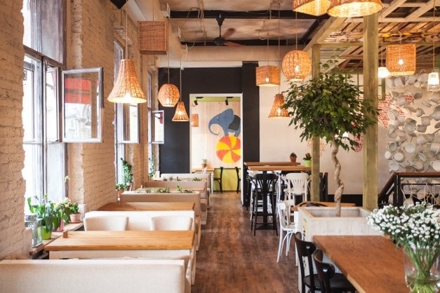 В ресторане-маркете нет официантов. Пространство поделено на прилавки, где можно найти блюда во всего света, а повара и бармены всегда порекомендуют лучшие блюда на ваш вкус.